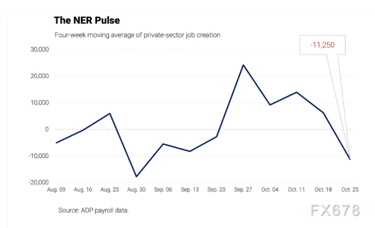 最新一轮就业线索来自私营部门周频数据:截至10月25日的四周内,私营雇主平均每周流失11250个岗位。统计方首席经济学家强调,10月下半月劳动力市场“难以持续地产生新增岗位”,并指出“由于需求走弱与供给受限,增速在可预见期内可能偏慢”。与此前公布的同口径两周前读数(+14250)相比,四周移动平均从正转负,叠加口径说明与节奏调整,使得周频数据成为市场盘中触发波动的新变量。与此同时,月频口径显示10月私营部门新增42000人,但结构并不均衡——教育与医疗、以及贸易/运输/公用事业贡献主要增量,而专业商业服务、信息以及休闲与酒店连续第三个月减员。这种“总量小幅正、结构偏弱”的组合,难以为美元提供持续的基本面背书。